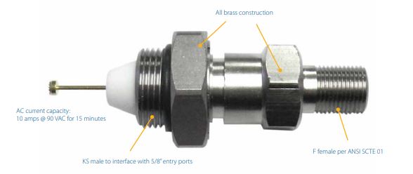 The KSMPFF test adapter is designed for technicians working on Taps, Line Extenders, Directional Couplers, Splitters, or any other component that uses 5/8” entry ports. The KSMPFF allows quick and easy measurements directly from the component.