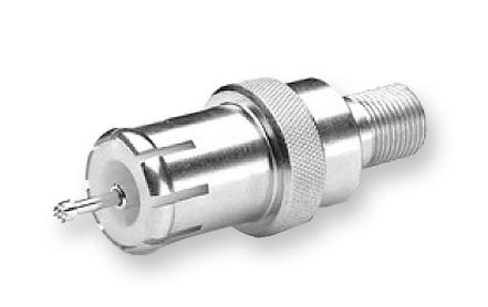 This product is designed to allow extraction of test signals and AC power from a female KS interface. The contact probe is spring loaded axially to accommodate a wide range of seizure mechanisms and dimensions. The 5/8" male interface employs a beryllium copper quick disconnect interface to eliminate threading. This allows quick insertion or removal. The female "F" connector has machined contacts for improved RF performance and maximum center conductor contact. This product passes AC power and can be used for a temporary voltage test point.